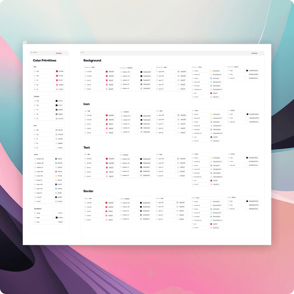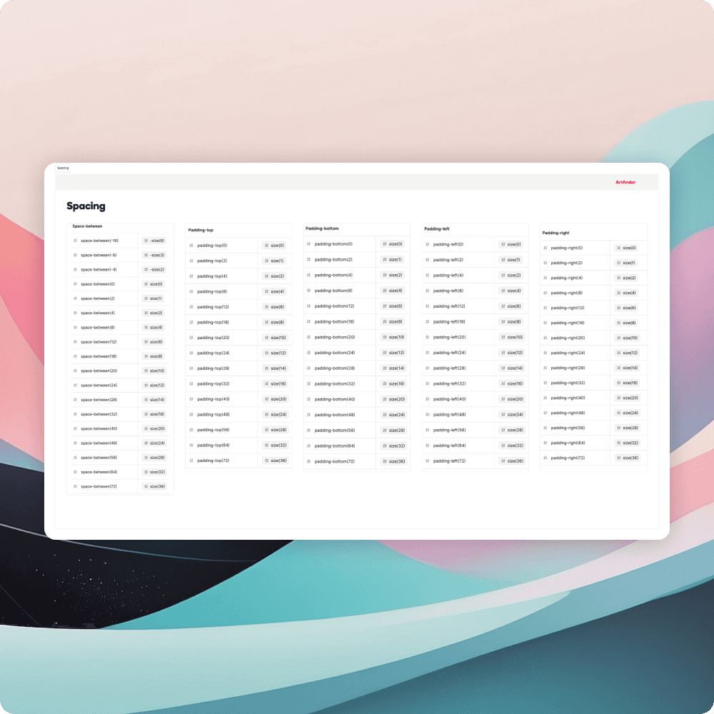 Critical decision: I implemented my own naming convention (size(8), Background/Red-200) because no standard existed at Artfinder. Kept it simple and logical so engineers could predict token names.